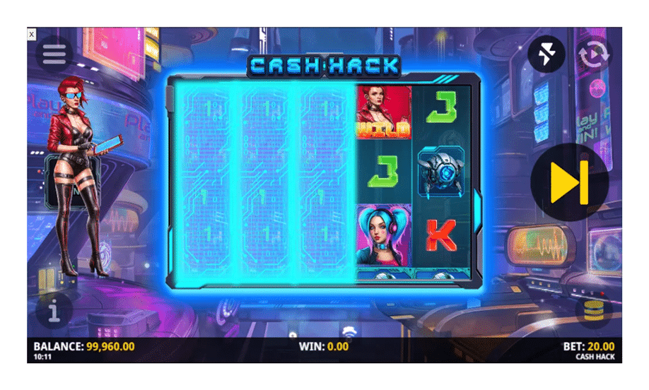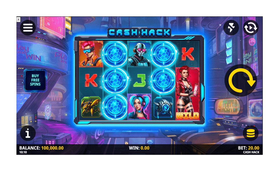 CASH HACK has a 3x5 reel layout with 20 paylines and comes with the SYNC REELS FEATURE and FREE SPINS FEATURE.