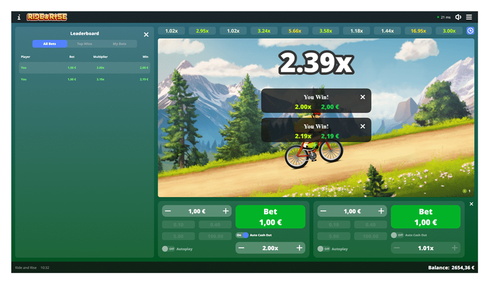 RIDE AND RISE is a new multiplayer crash game that lets you enjoy dynamic gameplay and win real money.